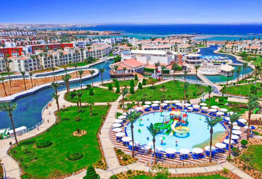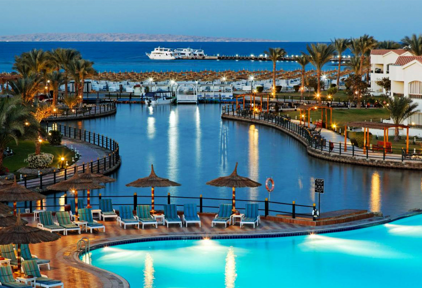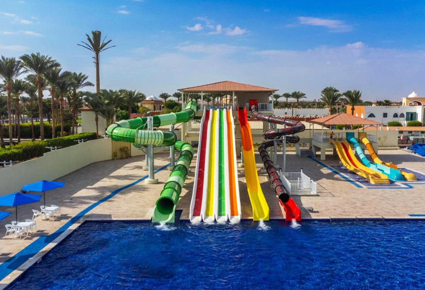 Located on the sea front with private sandy beach, the 5-star Hurghada resort offers accommodations on the Red Sea. Amenities include a lagoon-style outdoor pool, dove center and piano bar. All rooms feature an outdoor balcony. Dana Beach’s bright rooms have large windows and light wood furniture. Each private bathroom is stocked with free bath amenities and a hairdryer. Four restaurants are available and serve a range of cuisine including Italian, Mediterranean and Egyptian dishes. Dana Beach also offers a disco and 8 bars, including a beach bar overlooking the Red Sea. Guests can relax on a sun lounger under an umbrella on Dana hotel’s private beachfront. Sports options include tennis, diving instruction and billiards. The Dana Beach is located on 594 ft² of landscaped grounds. The Pickalbatros Dana Beach Resort – Aqua Park is only a 15-minute drive from Hurghada International Airport.